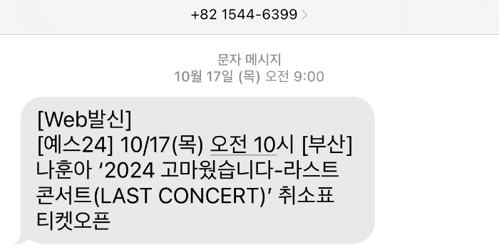 3. 취소표 티켓팅 오픈 1시간 전에 알림 문자 받으시고 예매 준비를 합니다.