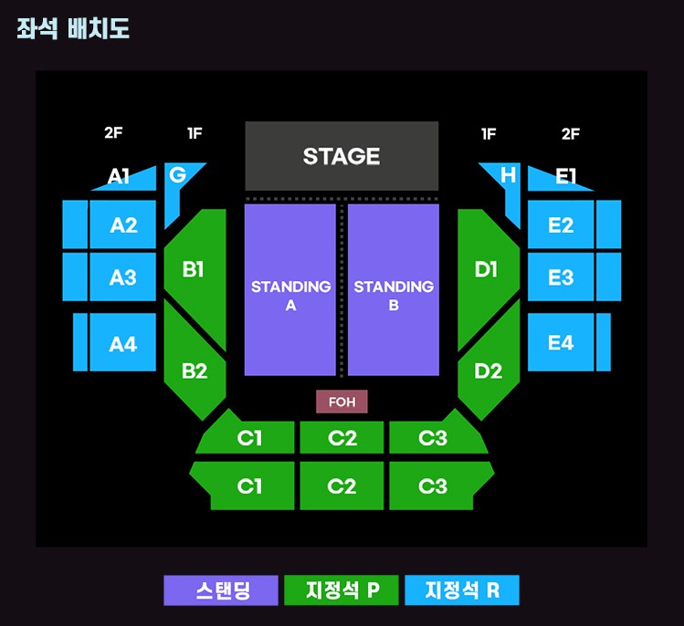 스탠딩석 132,000원, 지정석 P석 154,000원, R석 110,000원