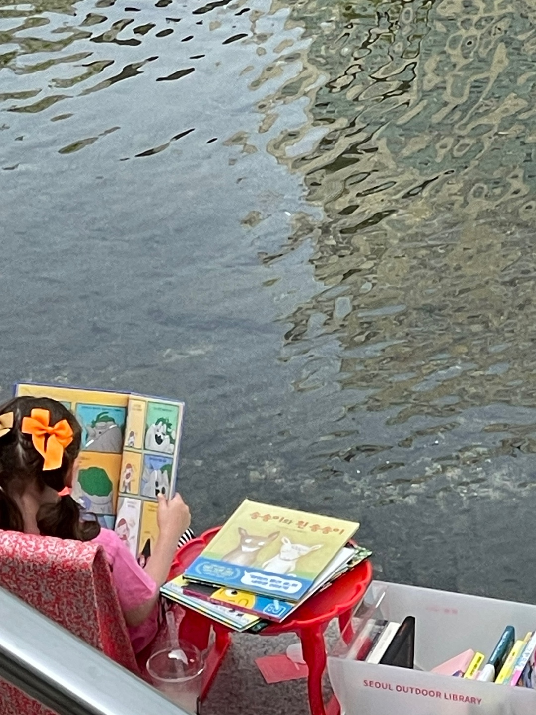 2024년 올해는 서울야외도서관이 청계천까지 진출하였습니다. 시원한 물줄기를 따라 의자가 놓이고 테이블이 놓이고 주말 금 토요일에는 책까지 읽을 수 있게 되었습니다. 도심 한 가운데서 이런 여유를 즐길 수 있다는 것이 놀랍기도 하고 반갑기도 합니다. 금요일은 직장인들이 쉬어가는 곳이었다면 토요일은 아마도 아이들과 가족들의 나들이 공간이 되지 않을까 생각됩니다. 금토만 운영되고 비가 오면 미운영됩니다. 헛걸음 하실 수 있으니 자세한 운영정보 꼭 미리 홈페이지에서 확인하고 가시길 바랍니다.
