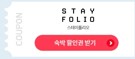 스테이폴리오에서는 대한민국 숙박세일 페스타 쿠폰과 함께 사용가능한 1만 원 추가 쿠폰을 지급하고 있습니다.