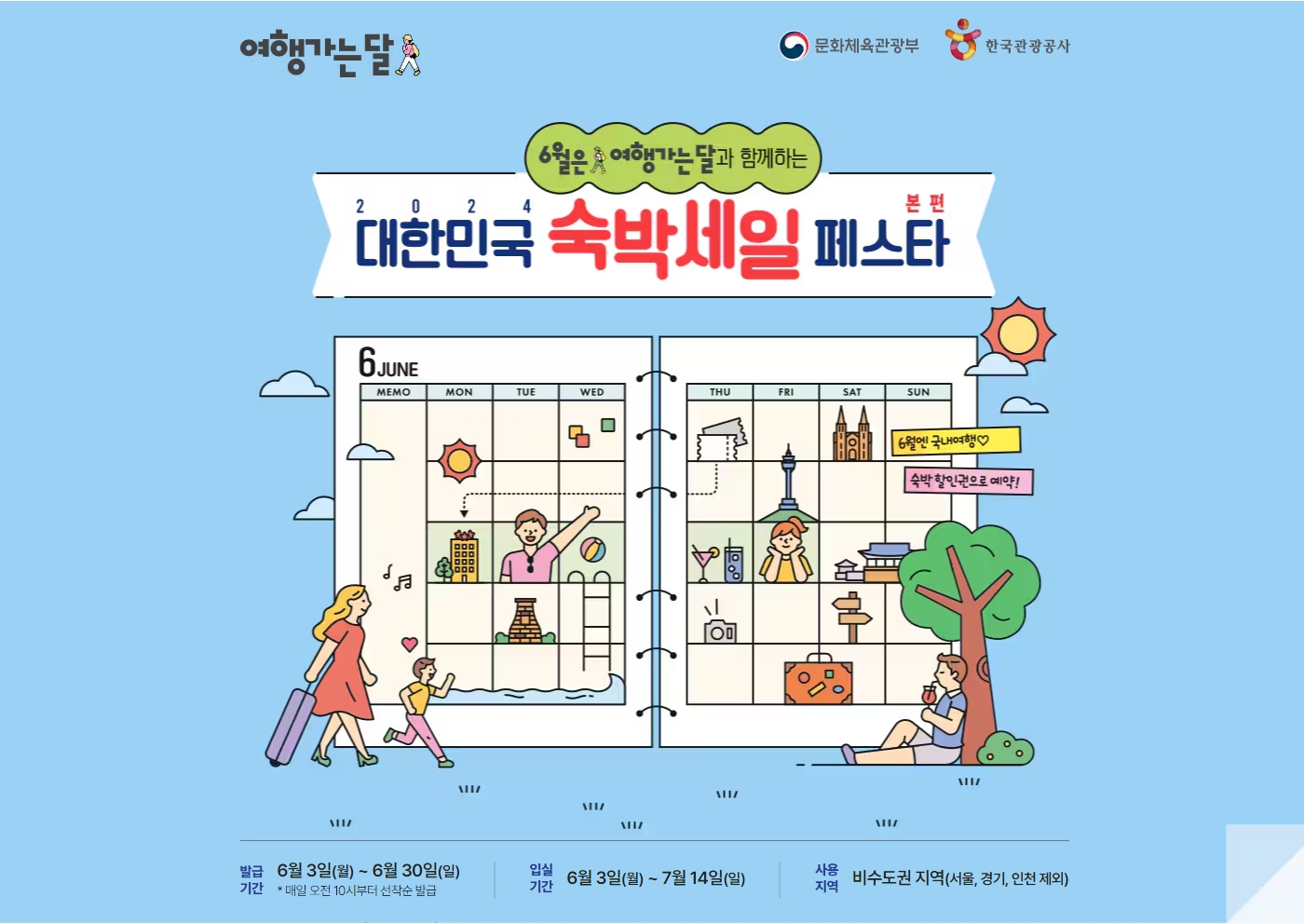 이번 여름은 폭염 폭우 태풍으로 어느 해보다 더울 것이라는 예보가 나옵니다. 더 더워지기 전 6월이 여행 가기 딱 좋은 달이겠지요. 마침 대한민국 숙박세일 페스타가 진행 중입니다. 대한민국 구석구석 여행 숙소마다 쿠폰 활용 가능하니 놓치지 마시고 꼭 할인 혜택 받으시길 바랍니다. 2024년 숙박세일 페스타에 참여하는 숨겨져 있던 보석 같은 숙소 여행사들에 대한 추천과 참여 업체별 정보 모아서 알려드리니 이 글에서 한 번에 알아가시면 됩니다. 사실 가고 싶은 곳들 좋은 곳들 많은데 숙박비가 부담이시죠? 무엇보다 숙박 할인 쿠폰은 선착순이라 벌써 마감하는 업체들이 생기고 있으니 아래 통해서 빠르게 쿠폰 발급 받아 할인 꼭 받으세요!