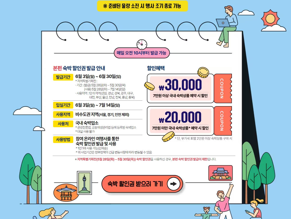 √ 지역특별기획전 숙박 할인권(5월 28일 ~ 5월 30일)을 사용하신 경우 본편 숙박 할인권 발급이 제한됩니다.